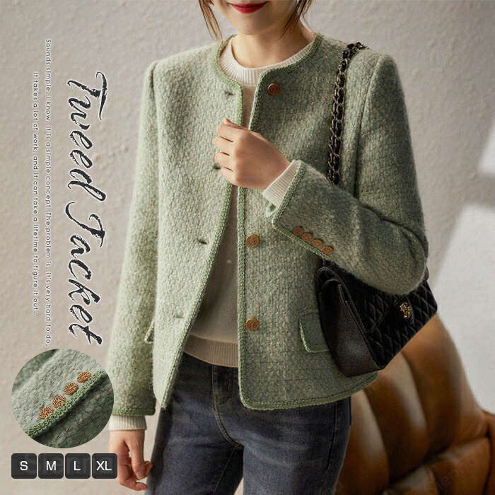 レディース ツイード ジャケット 春 秋 ノーカラー ジャケット 長袖 アウター 春服 入学式 卒業式 入園式 卒園式 母親 ママ