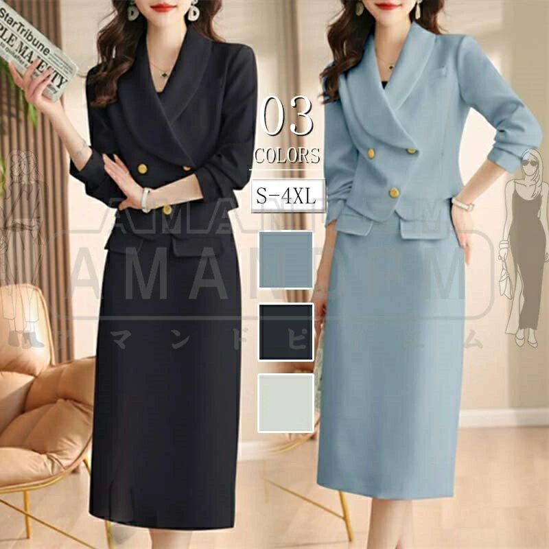 セットアップ レディース セレモニー スーツ きれいめ スカートスーツ 2点セット フォーマル 卒園式 ママ コーデ 大人 入学式 上下セット ノーカラージャケット ロングスカート ミモレ丈 ウエストゴム 体型カバー オフィス カジュアル ビジネス 通勤 OL 事務所 エレガント