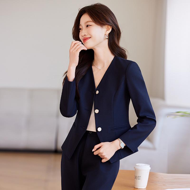 送料無料★韓国スタイル レディーススーツ 洗えるスーツ 2点セット 【ジャケット+パンツ/スカート】 着痩せ フォーマル セットアップ 通勤 OLママ 入学式 卒業式 カジュアル パンツスーツ 結婚式 オフィス セレモニースーツ 30代40代50代 Size:M/L/XL/2XL/3XL ネイビー