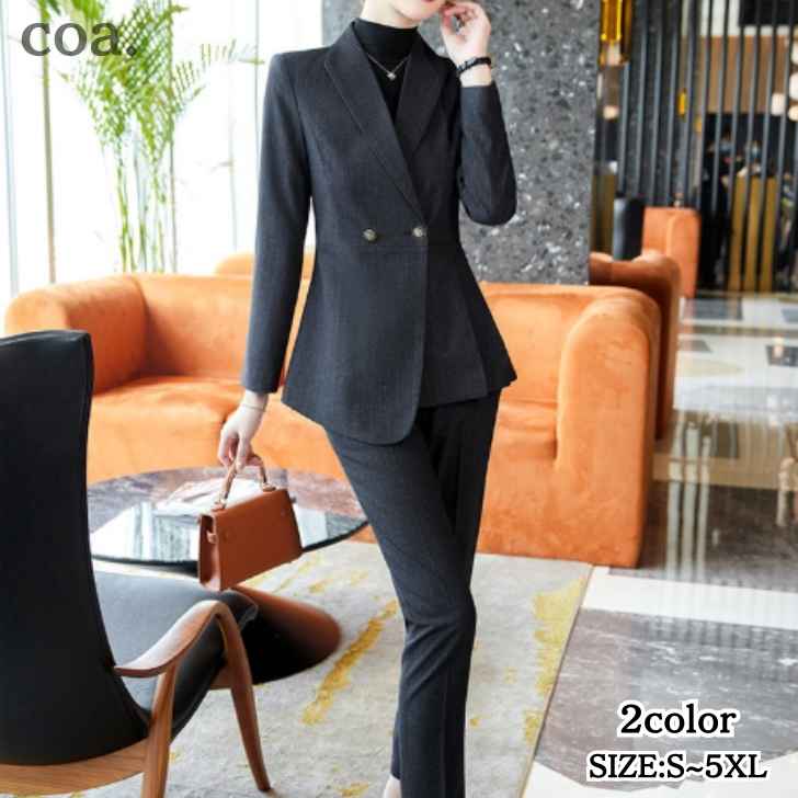 「品質良い」パンツスーツ フォーマル スーツ レディース お洒落 事務服 ジャケット+パンツ 2点セット OL オフィス ビジネス 通勤 就活面接 キャリア リクルート 30代 40代 50代 大きいサイズ セレモニースーツ 謝恩会 二次会 卒業式 入学式 長袖 春 秋 黒 グレー ネイビー