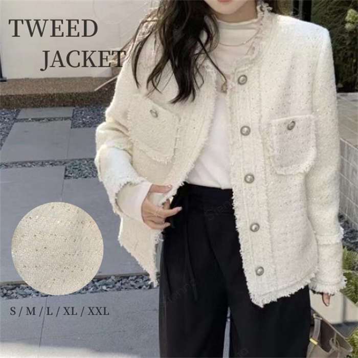 ツイードジャケット ノーカラー 春 羽織り ツイードジャケット ツイード 秋 春 ママスーツ フォーマルスーツ アウター 長袖 レディース フォーマル ジャケット 秋冬 カジュアル 通勤 お宮参り 結婚式 デート 女子会