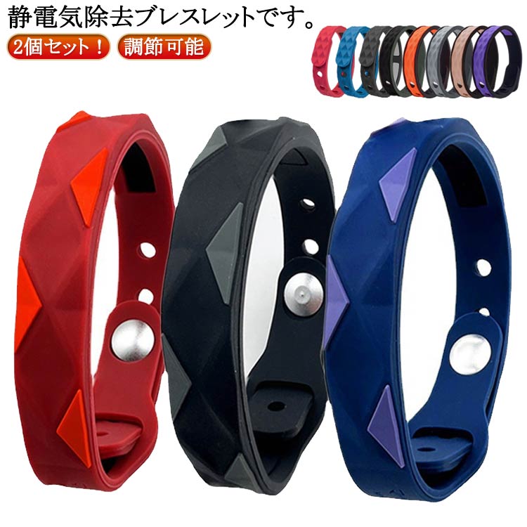 健康ブレスレッ ブレスレット 帯電防止 静電気除去 シリコン 静電気除去グッズ ブレスレット マイナスイオン 2個セット シンプル