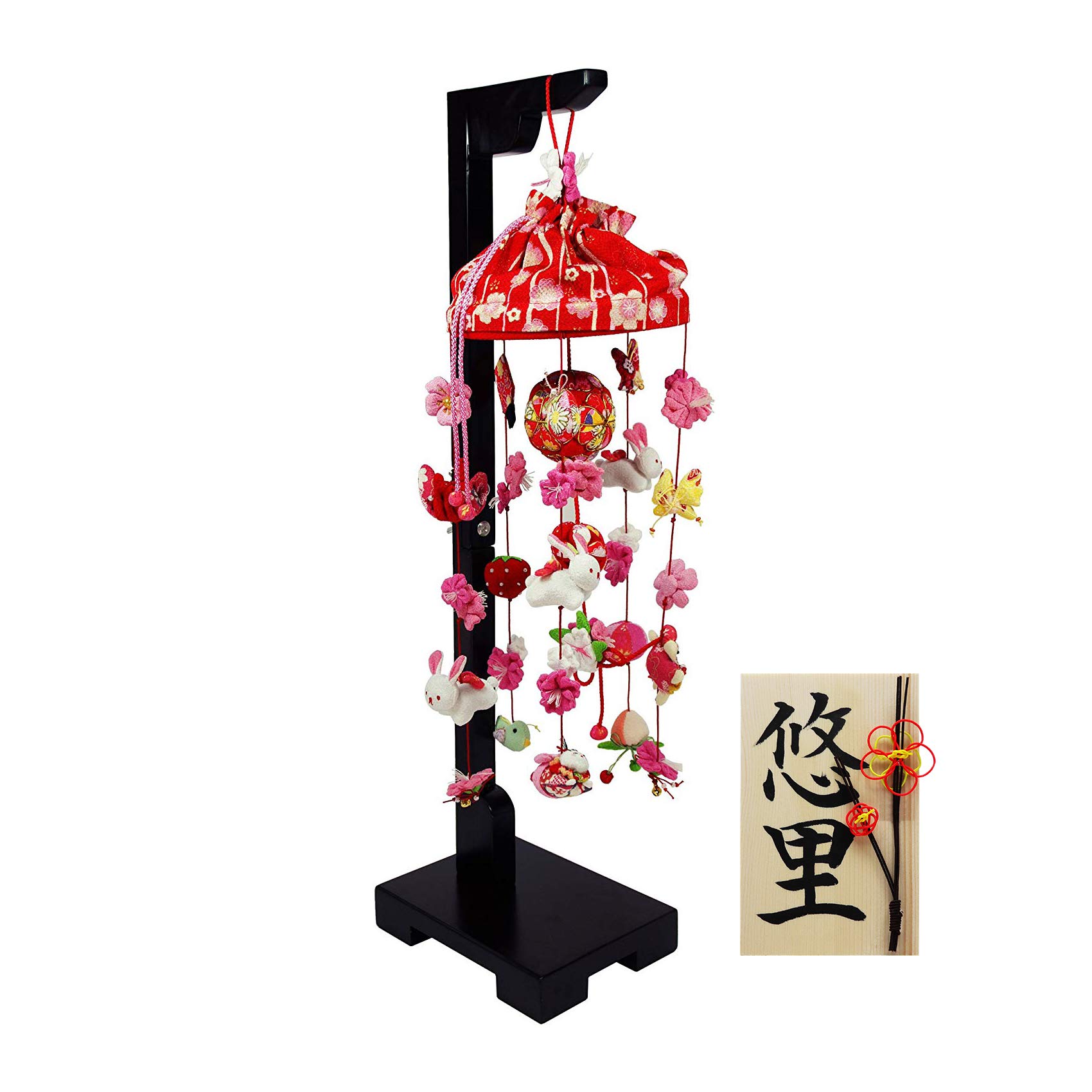 つるし雛 つるし飾り 雛人形 姫だるまとハート 中サイズ (高さ90cm) 飾り台付き