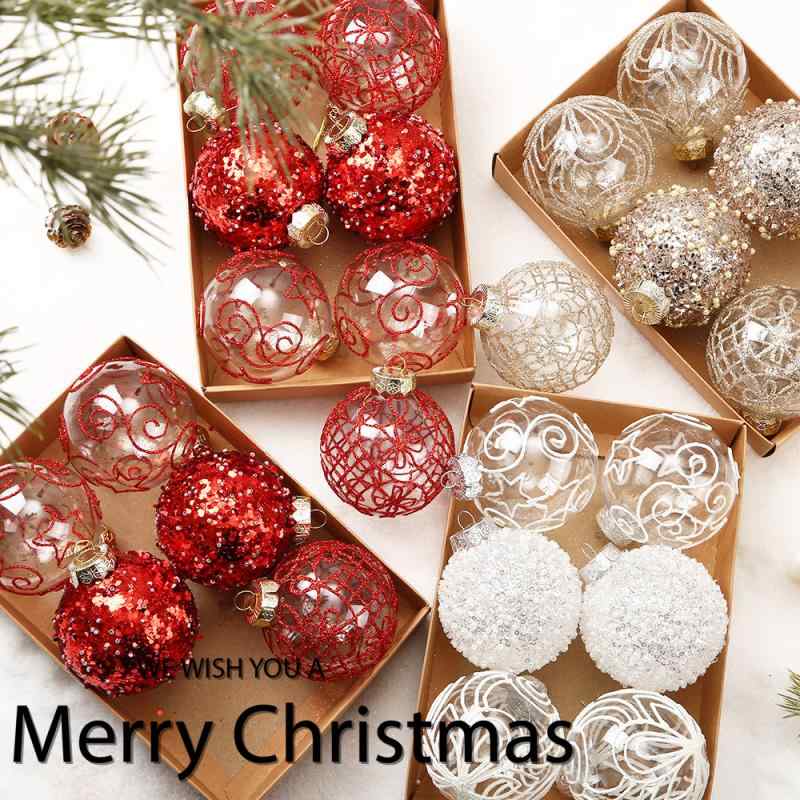 クリスマスツリー オーナメント セット クリア 塗装 装飾 ボール 吊り下げ アレンジメント ガーランド おしゃれ パーティー リビング 赤 白 ゴールド