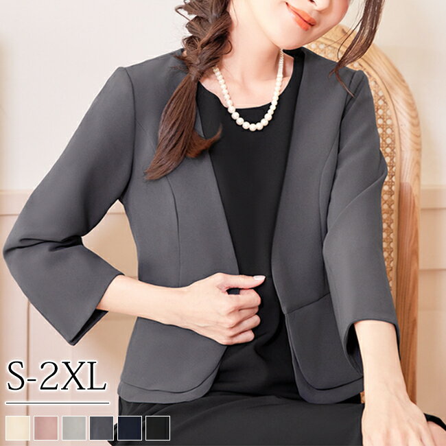 ジャケット ボレロ ショートジャケット ノーカラージャケット パーティーボレロ フォーマルジャケット カーディガン ノーカラー 二の腕カバー 結婚式 披露宴 二次会 パーティー 式典 入学式 卒業式 きれいめ 結婚式 七分袖 大きいサイズ フォーマル セミフォーマル ドレス