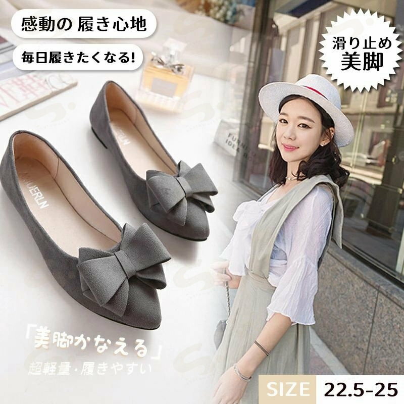 靴 レディース バレエシューズ ローヒール パンプス ぺたんこ 婦人靴 リボン かわいい 歩きやすい 痛くなりにくい フラットシューズ 春夏 秋冬 黒 赤 白