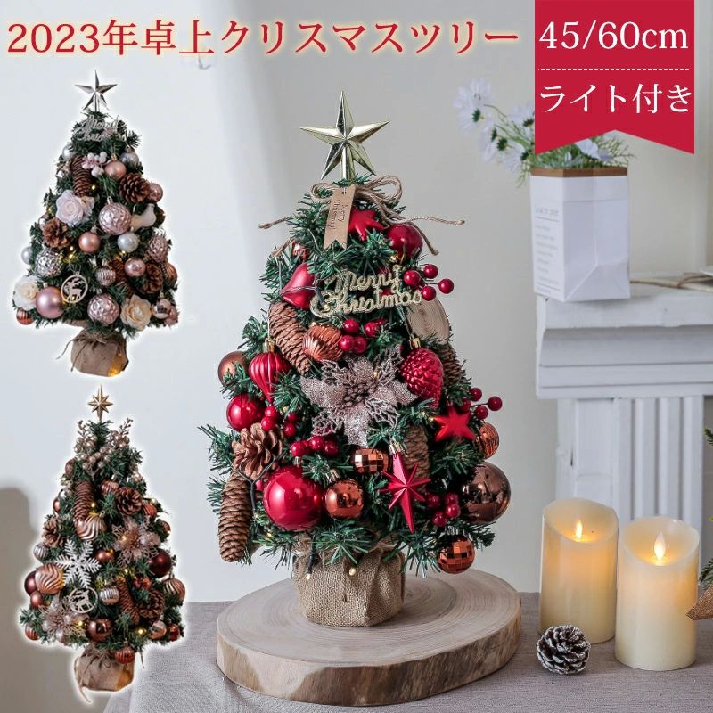 ミニツリ おしゃれ 卓上ミニクリスマスツリー 45cm ledライト クリスマスツリー 小型 オーナメントセット 北欧 卓上 45cm 60cm
