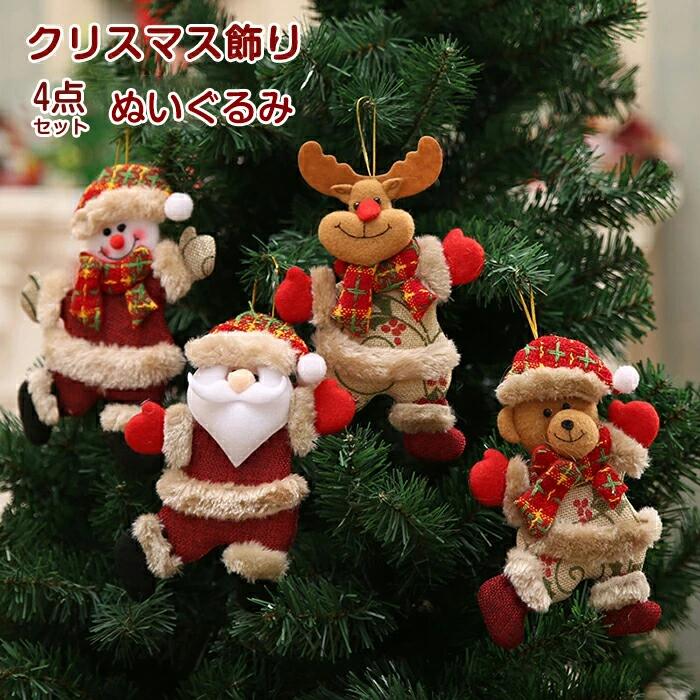 クリスマスオーナメント 4個入り クリスマス飾り ぬいぐるみ クリスマスツリー装飾 サンタ 人形 ペンダント クリスマス雑貨 可愛い サンタクロース 雪だるま トナカイ クマ クリスマスデコレーション 玄関飾り インテリア おしゃれ パーティー 店舗 部屋 飾りつけ プレゼント
