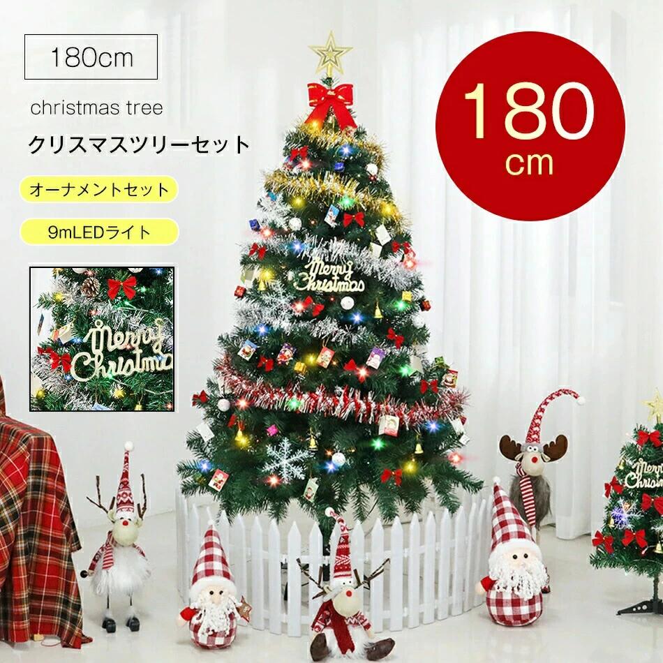 【楽天スーパーSALE】180cmクリスマスツリーセット PVC クリスマスツリー オーナメントセット 9mLEDライト おしゃれ 北欧風 飾り まるで本物 組み立て簡単 クリスマス ツリー 人気 高品質 豪華 プレゼント 子供 おしゃれ イルミネーション スリム 北欧 180cm