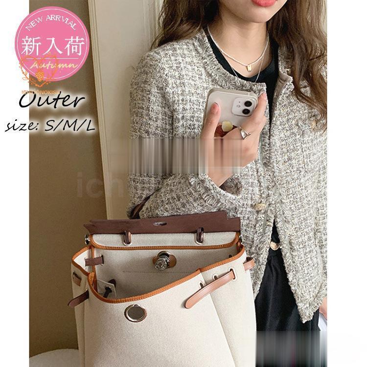 ツイードジャケット レディース 40代 長袖ノーカラージャケット ショット丈ツイードコート 春コートアウター 秋服 大人韓国風 通勤OL オフィス 入学式 卒業式