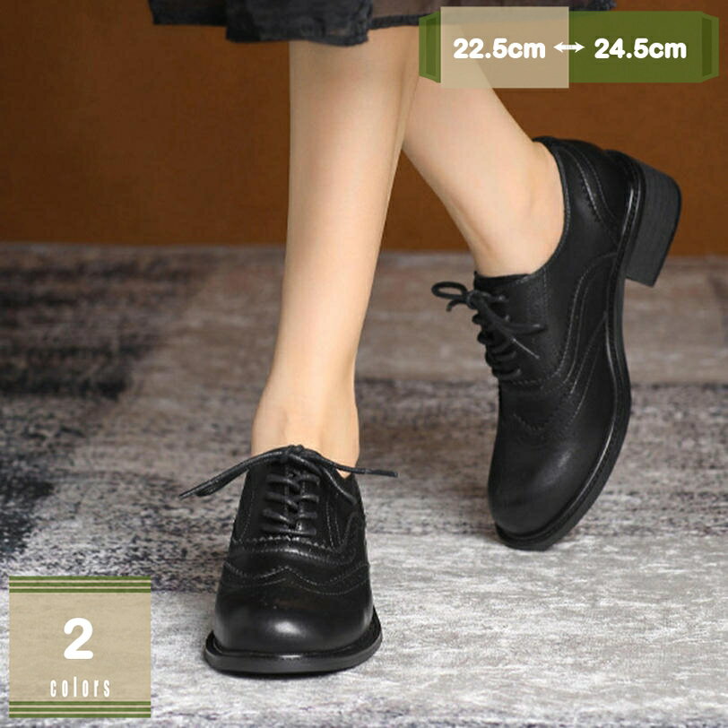 レースアップシューズ レディース オフィス オックスフォードシューズ ビジネスシューズ カジュアル 痛くない 厚底靴 滑り止め ローヒール 4cm フォーマル 足長効果 日常 ウィングチップ ぺたんこ 通勤 ハンサムシューズ mysco