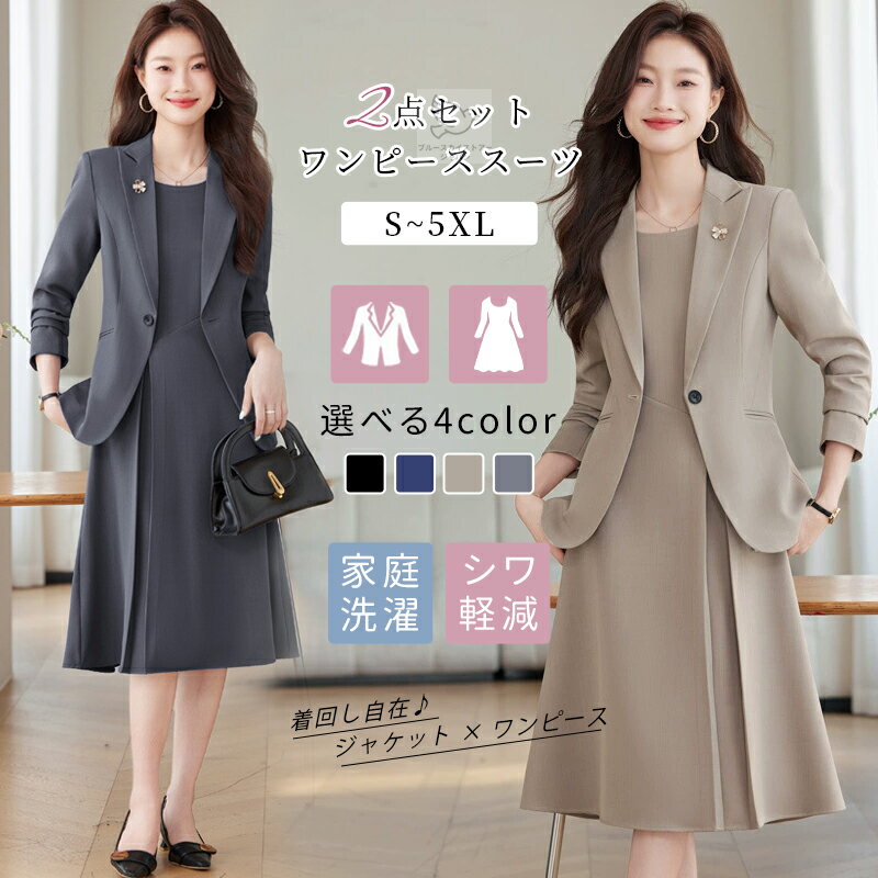 セレモニースーツ レディース 2点セット ママスーツ ワンピーススーツ レディース セットアップ ノーカラージャケット フォーマルスーツ レディース ミセス 50代 40代 30代 入学式 スーツ 母 結婚式 入園式 卒園式 卒業式 スーツ 母 七五三 上品 体型カバー 洗える