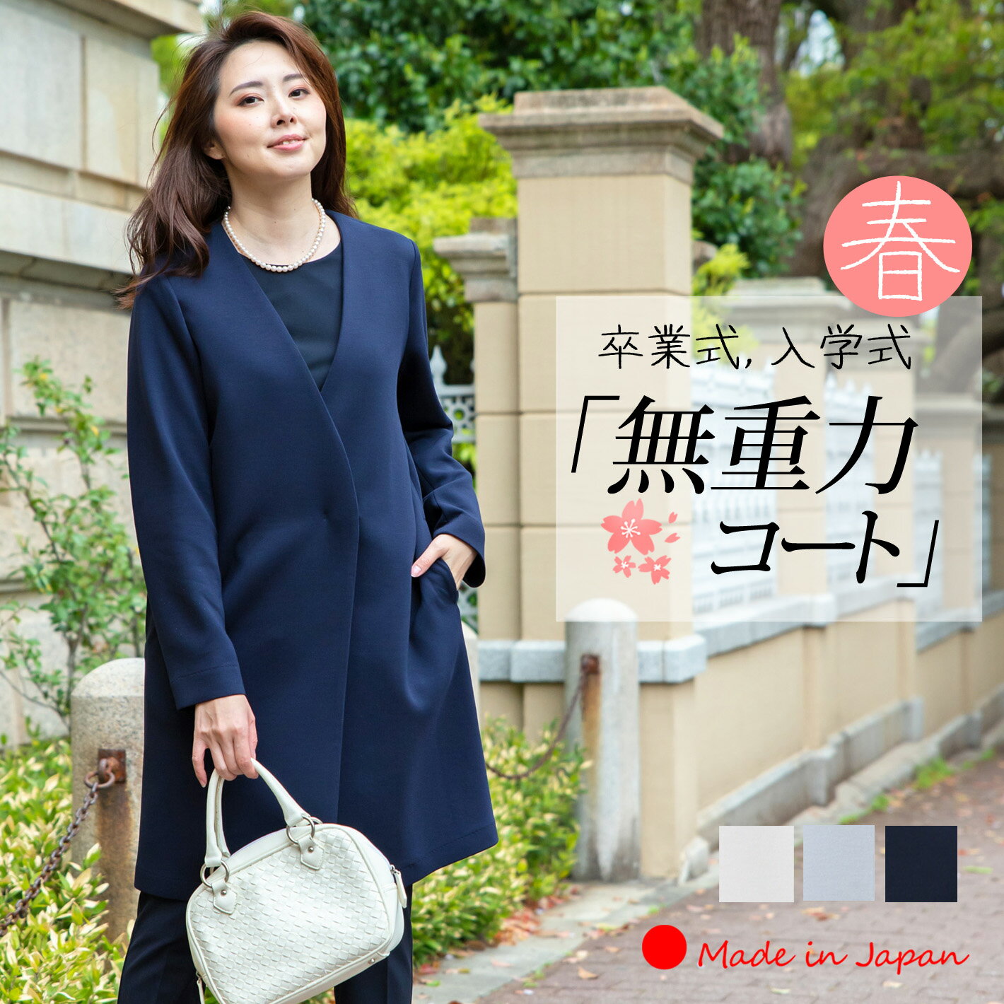 \早割クーポン利用で15,600円/【 日本製 】 無重力 コート スプリングコート レディース 春 秋冬 ノーカラー 軽い ダンボールニット ミドル丈 卒業式 母 40代 30代 入学式 ママ 顔合わせ 50代 服装 フォーマル セレモニー きれいめ 【ダブルエアーコート】<8021>