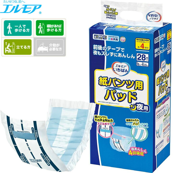 紙おむつ エルモア いちばん 紙パンツ用パッド 夜用 28枚 男女共用 カミ商事 475861 大人用 おむつ パッドタイプ まとめ買い ケース販売 も選べます