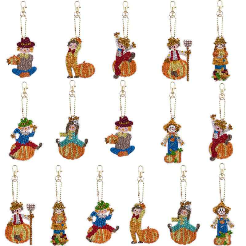 ダイヤモンドアート 手作りキット 16個 キーホルダー クリスマス ペンダント アクリル製 クラフト ホビー オーナメント セット プレゼント(x2)