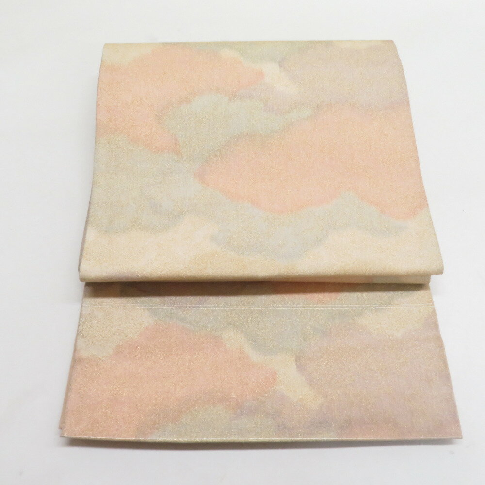 袋帯 砂子つづれ 雲文様 正絹 全通柄 金糸 金色 セミフォーマル 仕立て上がり 着物帯 長さ440cm【中古】