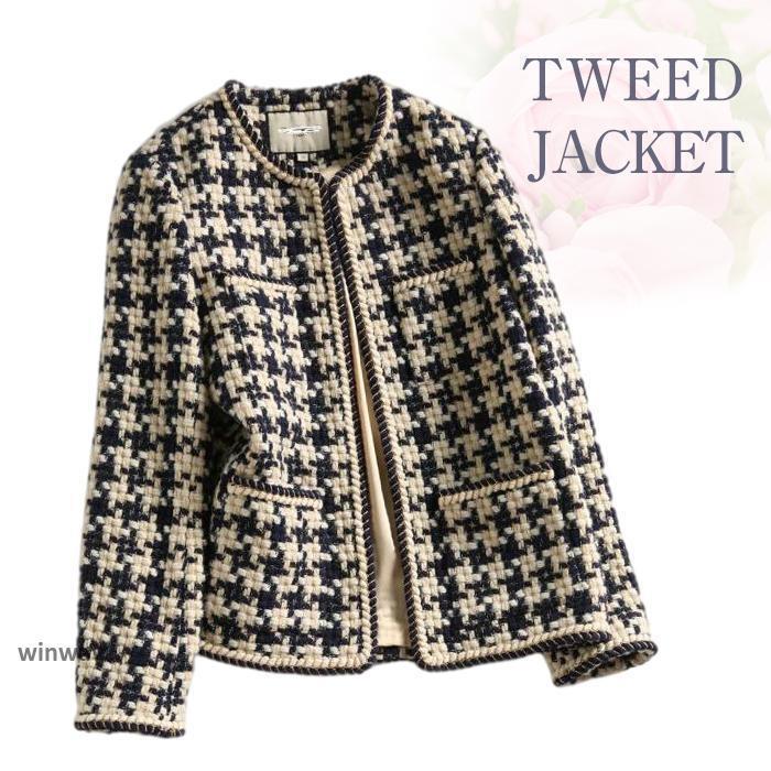 ツイード ジャケット レディース ノーカラージャケット ツイード アウター 春 秋 冬 オフィスカジュアル カジュアル ショート丈 ミドル丈 オフィス 入学式