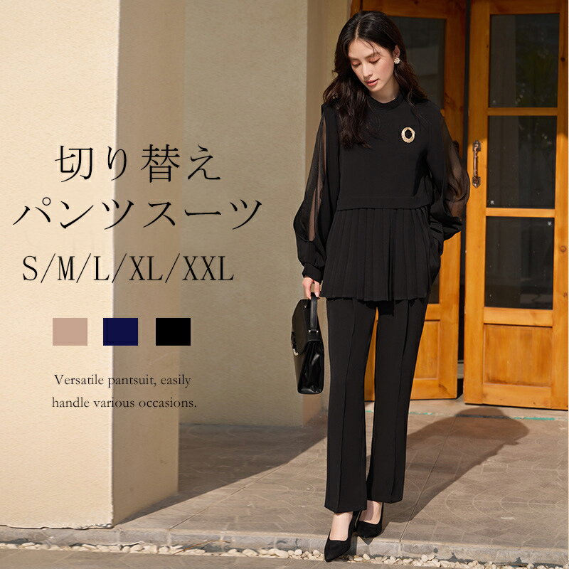 パンツスーツ レディース セットアップ 異素材ドッキング 結婚式 お呼ばれ パーティー ママスーツ パンツドレス セレモニー 切り替え フォーマルスーツ 七五三 卒業式 入学式 入園式 お宮参り ミセス 50代 40代 30代 上品 きれいめ 母親 黒 ブラック ネイビー カーキ