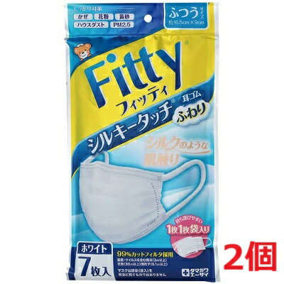 【送料込・まとめ買い×2個セット】【数量限定】フィッティ シルキータッチ 耳ゴムふわり ホワイト 7枚入 やや大きめサイズ 個包装マスク(4901957215300)※パッケージ変更の場合あり