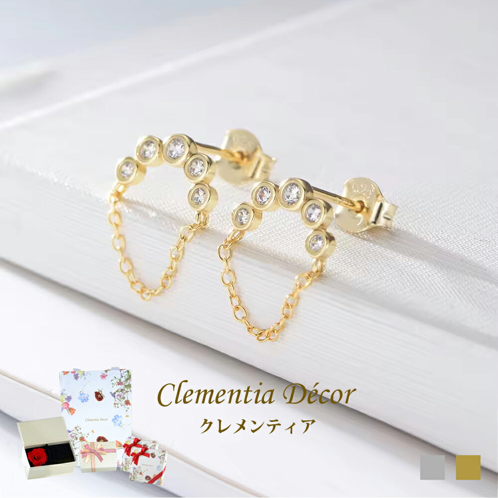 チェーン ピアス レディース 短め 金属アレルギー 対応 ジルコニア 18金 K18 プラチナ 仕上 可愛い ミラ ブランド 彼女 プレゼント 女性 クリスマス プレゼント 誕生日プレゼント 女友達 ギフト おしゃれ 50代 20代 30代 40代 結婚記念日 妻 【優】【P】
