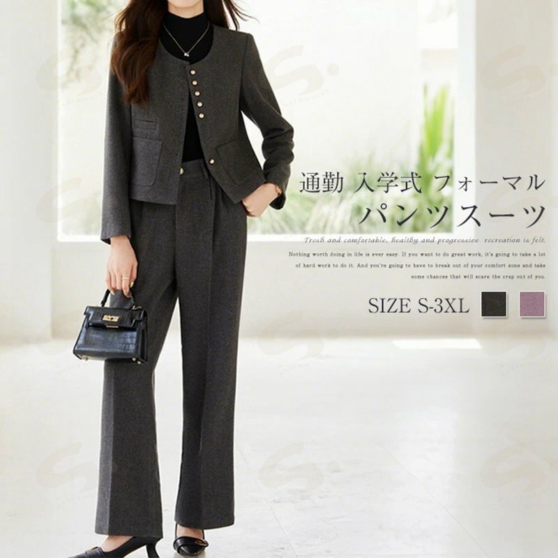 パンツスーツ レディース スーツ パンツ セットアップ 卒業式 セレモニー フォーマル ジャケット ワイドパンツ ウール ママコーデ ゆったり ビジネス エレガント クルーネック 通勤 OL 女性 オフィス 事務所 大きいサイズ 体型カバー 入学式 卒業式 ママスーツ 無地