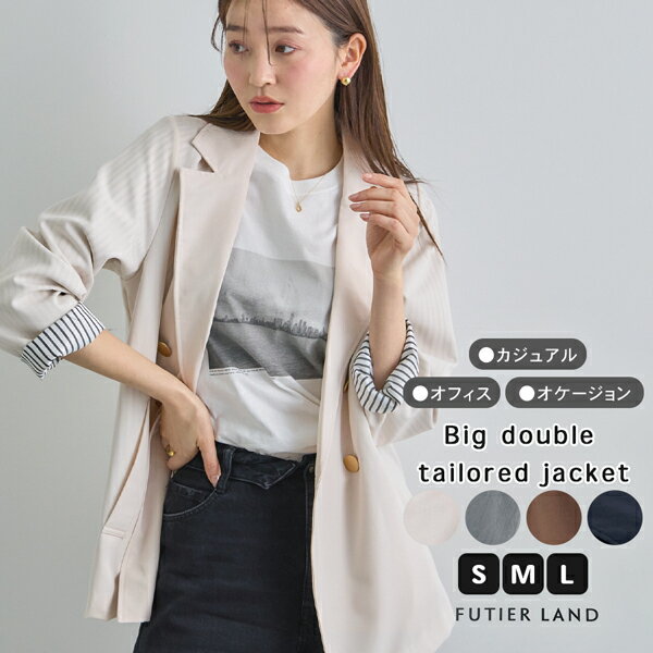 1000円クーポンで5990円★ ジャケット レディース ストライプ 無地 秋 冬 大きいサイズ 防寒 テーラードジャケット ライトアウター ストライプ柄 金ボタン ゴールドボタン ファッション / BIGダブルテーラードジャケット
