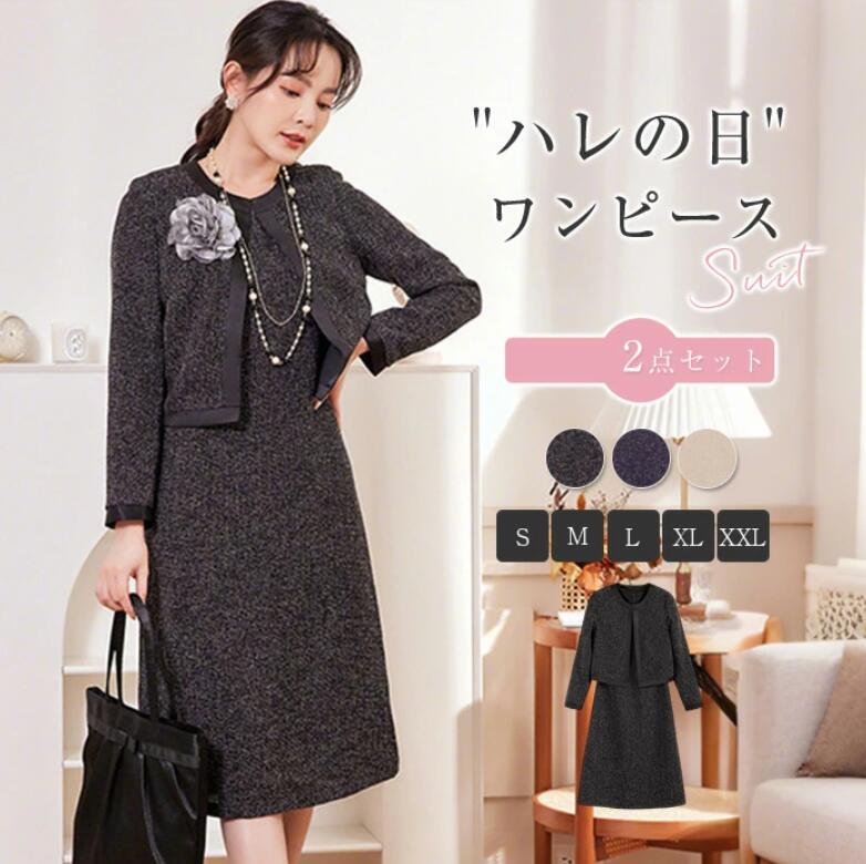 2点セット ジャケット × ワンピース スーツセット セットアップ 卒業式 スーツ レディース セレモニースーツ 大きいサイズ 入学式 ママスーツ フォーマルスーツ ロングワンピース 入園式 卒園式 ママ 母親 冬 50代 40代 30代 低身長 体型カバー