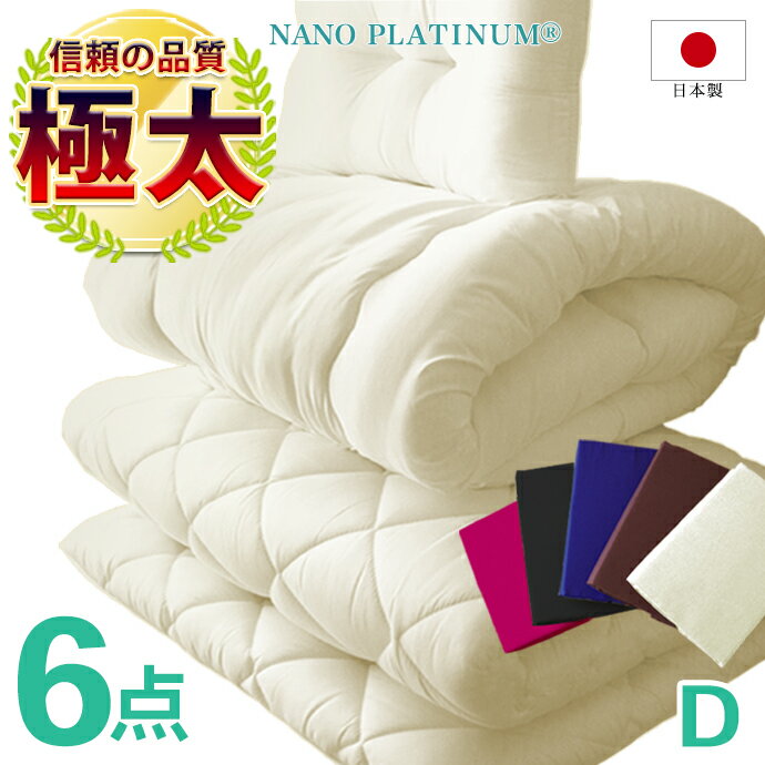 極太 極厚 掛け敷き布団セット ダブル 日本製 6点セット 布団セット ダブル 5層構造 敷き布団 掛け布団 枕 まくら 布団カバー セット 固綿 少し 硬め 防ダニ 消臭 抗菌 防臭 防カビ 洗える 【 3点カバー付き シルク調 】 軽い 腰痛 肩こり 体圧分散 国産