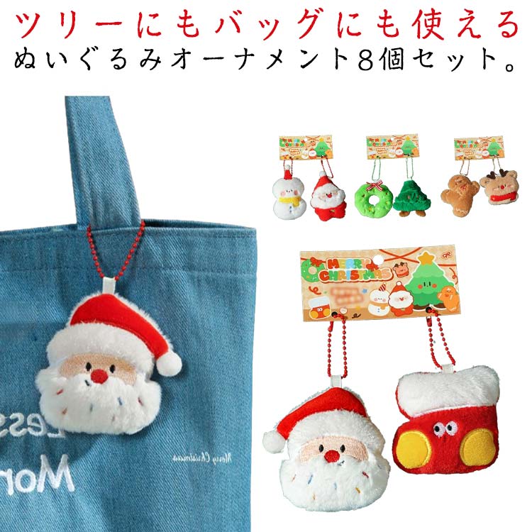 クリスマスツリー オーナメント セット ぬいぐるみ サンタクロース かわいい 手のひらサイズ クリスマスリース ミニツリー 8個セット クリスマスツリー バッグチャーム トナカイ キーホルダー マスコット ミニ 飾り 装飾