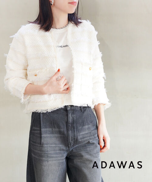 【40%OFF】【2/15限定まとめ買いクーポン対象】アダワス ADAWAS ジャケット ツイード ノーカラージャケット アウター 長袖 金ボタン フリンジ おしゃれ 入学式 セレモニー オケージョン・ADWS-407-14-2702501(レディース)