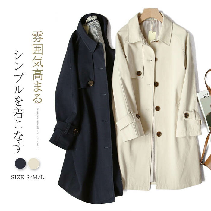 トレンチコート レディース 秋 春 冬 スプリングコート レディース ステンカラーコート 秋コート コート 無地 ベーシック ミドル 洗える ライトアウター ロングコート カジュアル ライトコート 大きいサイズ 裏地付き おしゃれ 体型カバー 上品 通勤 30代 40代 50代 綿