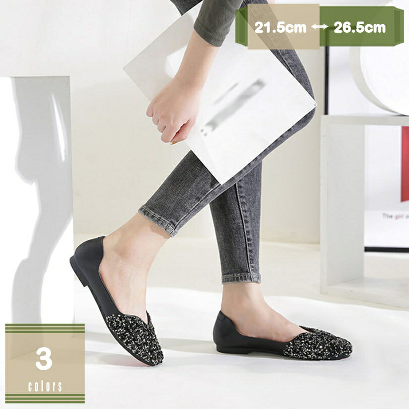 パンプス ぺたんこ ローヒール フラットシューズ 痛くない 歩きやすい 走れる スクエアトゥ 2センチヒール レディース フラット 低反発 スパンコール キラキラ バレエシューズ 大きいサイズ 脱げない バレエシューズ 美脚 mysco