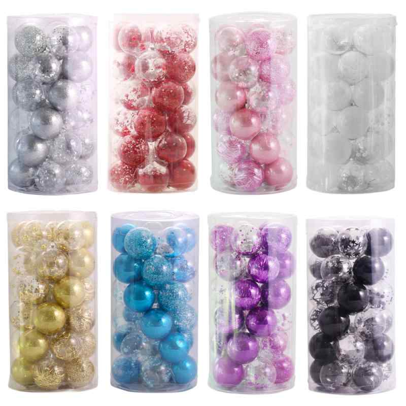 クリスマス飾り グリッター ラメ入り ツリー プラスチック製 クリスマスツリー 飾り クリスマス飾り付け クリスマス飾 透明 6cm 30個 ボールオーナメント セット リボン付き デコレーション 吊り下げ飾り ゴールド シルバー レッド ブルー ピンク
