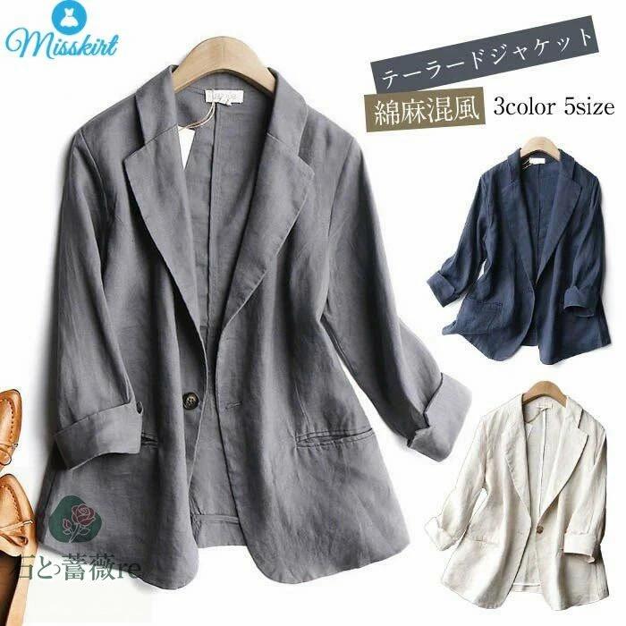 テーラード ジャケット レディース 綿麻 テーラードジャケット スーツジャケット アウター 春アウター ジャケット レディース 大きいサイズ フォーマル ジャケット スーツ カジュアル 上着 通勤 OL 春 夏 七分袖 入学式 卒業式 送料無料