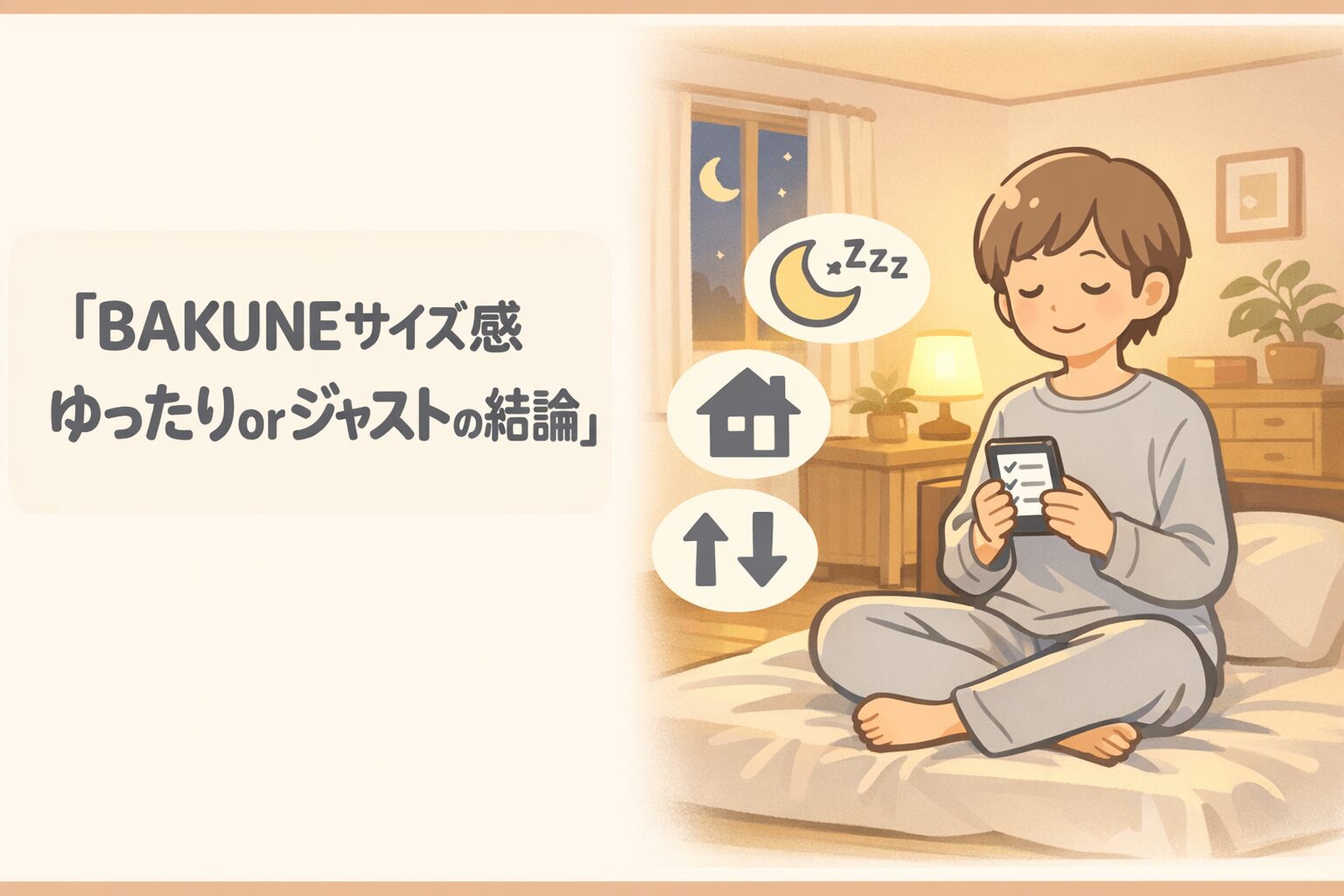 結論は、BAKUNEは「寝る目的ならゆったり」「部屋着も兼ねるならジャスト」で選ぶのが一番ズレません。
