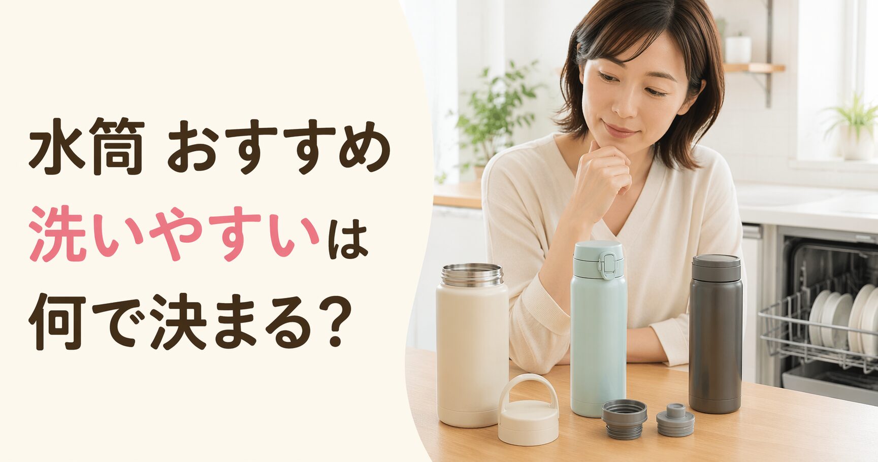 この記事では、洗いやすい水筒を選ぶときに見るべきポイントと、広口、パーツの少なさ、食洗機対応のどれが自分に合いやすいかを整理します。